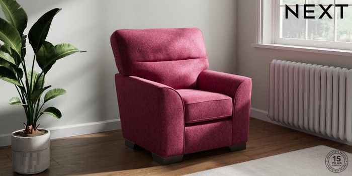 6.12.1 Buy Stamford Highback Small Armchair Cotswold Chenille Dark Raspberry Pink Square Angle - Gunmetal from the Next UK online shop Click here to use our accessible website