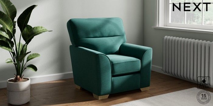 6.12.1 Buy Stamford Highback Small Armchair Fine Chenille Easy Clean Dark Juniper Green Square Angle - Light from the Next UK online shop Click here to use our accessible website