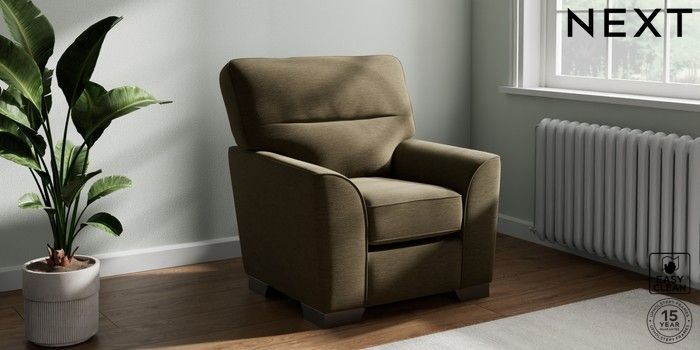 6.12.1 Buy Stamford Highback Small Armchair Fine Chenille Easy Clean Dark Moss Green Square Angle - Gunmetal from the Next UK online shop Click here to use our accessible website