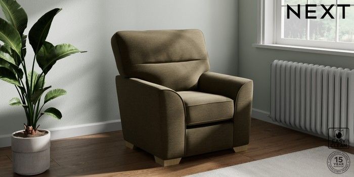 6.12.1 Buy Stamford Highback Small Armchair Fine Chenille Easy Clean Dark Moss Green Square Angle - Light from the Next UK online shop Click here to use our accessible website