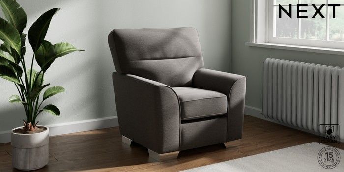 6.12.1 Buy Stamford Highback Small Armchair Fine Chenille Easy Clean Dark Smoke Grey Square Angle - Chrome Metal from the Next UK online shop Click here to use our accessible website