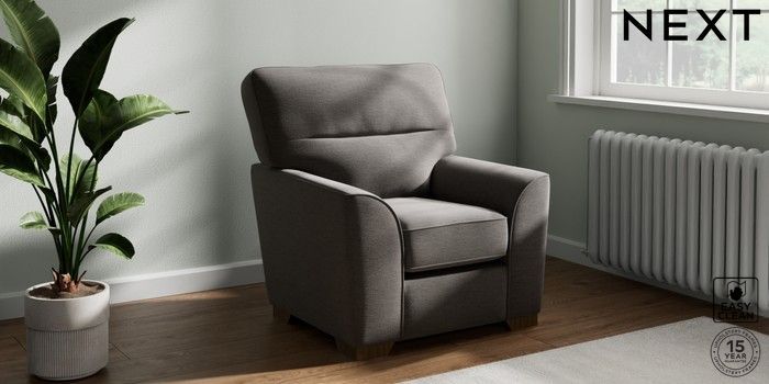 6.12.1 Buy Stamford Highback Small Armchair Fine Chenille Easy Clean Dark Smoke Grey Square Angle - Mid from the Next UK online shop Click here to use our accessible website