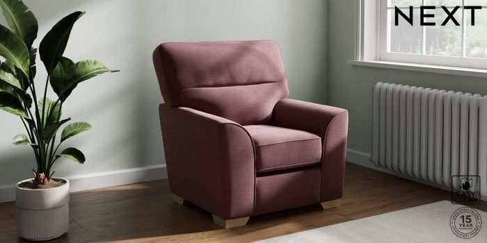 6.12.1 Buy Stamford Highback Small Armchair Fine Chenille Easy Clean Mid Mulberry Purple Square Angle - Light from the Next UK online shop Click here to use our accessible website