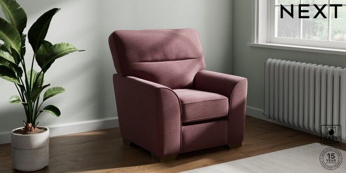 6.12.1 Buy Stamford Highback Small Armchair Fine Chenille Easy Clean Mid Mulberry Purple Square Angle - Mid from the Next UK online shop Click here to use our accessible website
