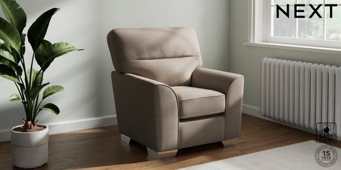 6.12.1 Buy Stamford Highback Small Armchair Fine Chenille Easy Clean Mid Taupe Brown Square Angle - Chrome Metal from the Next UK online shop Click here to use our accessible website