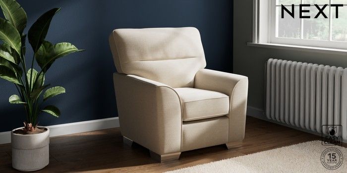 6.12.1 Buy Stamford Highback Small Armchair Fine Chenille Easy Clean Oyster Square Angle - Chrome Metal from the Next UK online shop Click here to use our accessible website