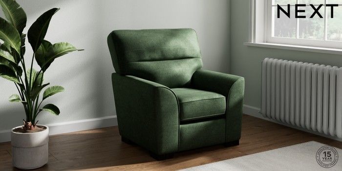 6.12.1 Buy Stamford Highback Small Armchair Luxe Chenille Dark Green Square Angle - Dark from the Next UK online shop Click here to use our accessible website