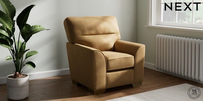 7.0.3 Buy Stamford Highback Small Armchair Luxe Chenille Honey Yellow Square Angle - Brushed Brass from the Next UK online shop Click here to use our accessible website