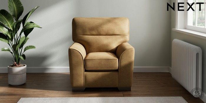 6.12.1 Buy Stamford Highback Small Armchair Luxe Chenille Honey Yellow Square Angle - Gunmetal from the Next UK online shop Click here to use our accessible website
