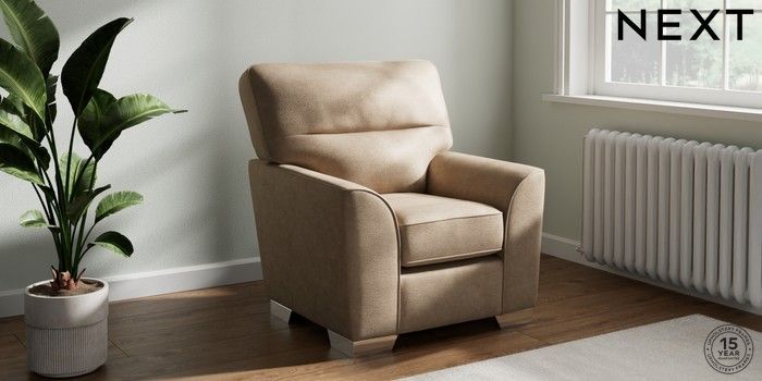 6.12.1 Buy Stamford Highback Small Armchair Luxe Chenille Mid Camel Beige Square Angle - Chrome Metal from the Next UK online shop Click here to use our accessible website