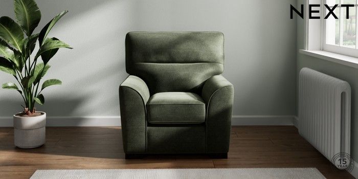 6.12.1 Buy Stamford Highback Small Armchair Luxe Chenille Mid Green Square Angle - Dark from the Next UK online shop Click here to use our accessible website