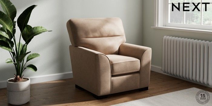 6.12.1 Buy Stamford Highback Small Armchair Luxe Chenille Mid Natural Square Angle - Dark from the Next UK online shop Click here to use our accessible website