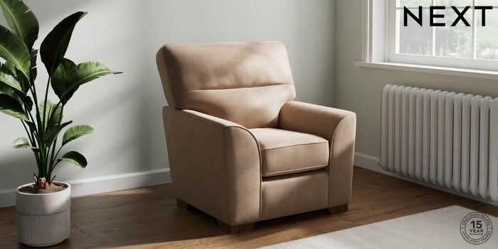 6.12.1 Buy Stamford Highback Small Armchair Luxe Chenille Mid Natural Square Angle - Mid from the Next UK online shop Click here to use our accessible website