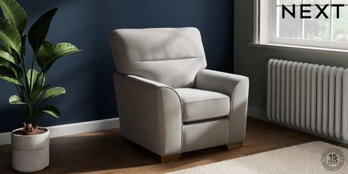6.12.13 Buy Stamford Highback Small Armchair Natural Mix Light Grey Square Angle - Brushed Brass from the Next UK online shop Click here to use our accessible website