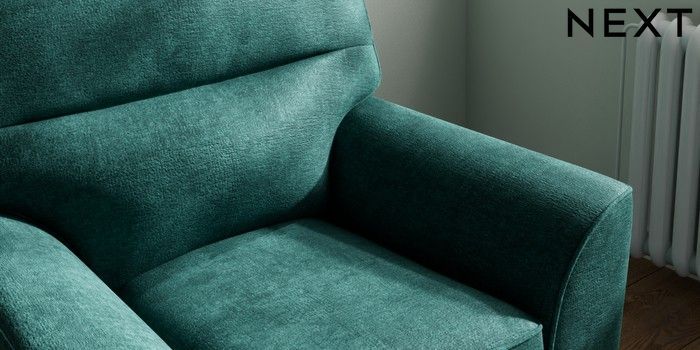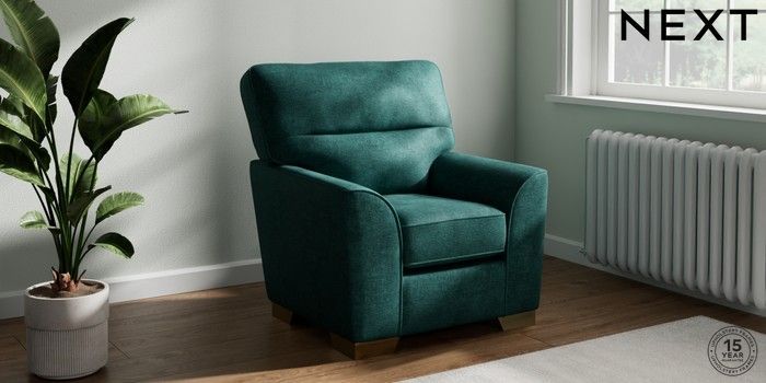 6.12.1 Buy Stamford Highback Small Armchair Plush Chenille Dark Teal Green Square Angle - Brushed Brass from the Next UK online shop Click here to use our accessible website