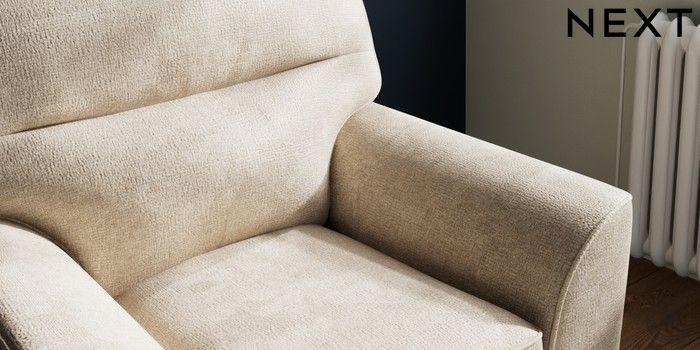 6.12.1 Buy Stamford Highback Small Armchair Plush Chenille Light Natural Square Angle - Light from the Next UK online shop Click here to use our accessible website