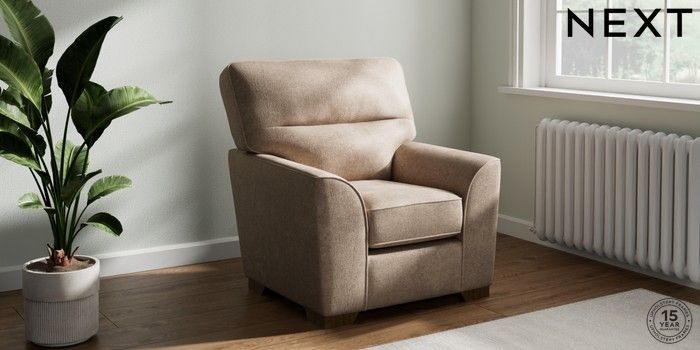 6.12.1 Buy Stamford Highback Small Armchair Plush Chenille Mid Natural Square Angle - Mid from the Next UK online shop Click here to use our accessible website