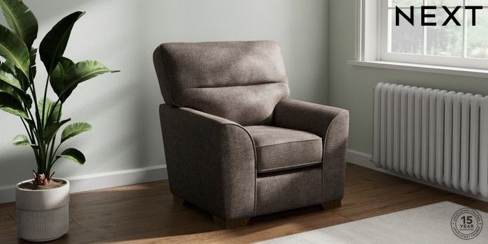 6.12.1 Buy Stamford Highback Small Armchair Plush Chenille Mink Brown Square Angle - Mid from the Next UK online shop Click here to use our accessible website