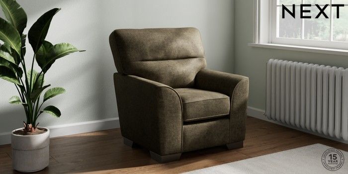 6.12.1 Buy Stamford Highback Small Armchair Plush Chenille Moss Green Square Angle - Gunmetal from the Next UK online shop Click here to use our accessible website