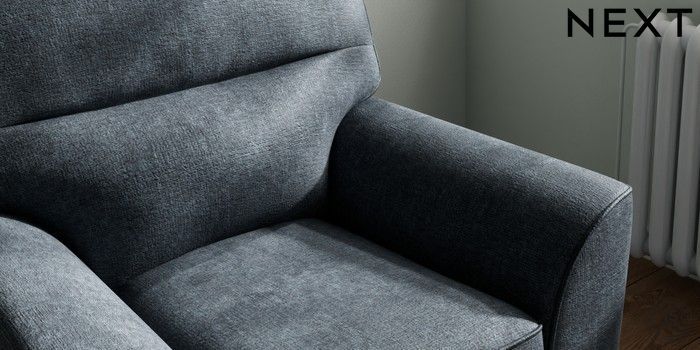 6.12.1 Buy Stamford Highback Small Armchair Plush Chenille Slate Blue Square Angle - Brushed Brass from the Next UK online shop Click here to use our accessible website