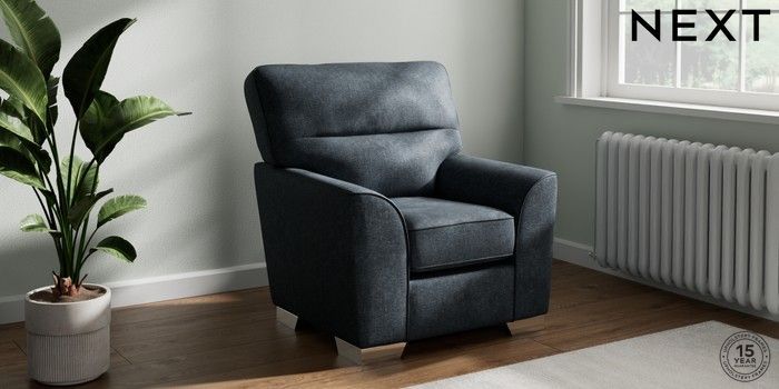 6.12.1 Buy Stamford Highback Small Armchair Plush Chenille Slate Blue Square Angle - Chrome Metal from the Next UK online shop Click here to use our accessible website