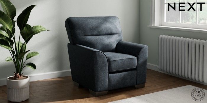 6.12.1 Buy Stamford Highback Small Armchair Plush Chenille Slate Blue Square Angle - Gunmetal from the Next UK online shop Click here to use our accessible website