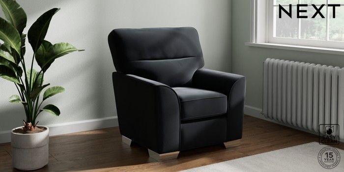 6.12.1 Buy Stamford Highback Small Armchair Plush Velvet Easy Clean Charcoal Grey Square Angle - Chrome Metal from the Next UK online shop Click here to use our accessible website