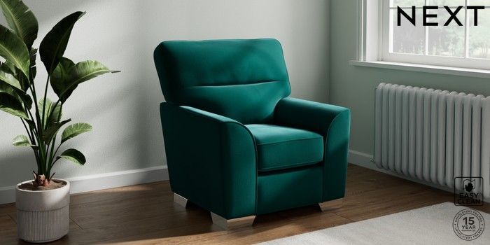 6.12.1 Buy Stamford Highback Small Armchair Plush Velvet Easy Clean Juniper Green Square Angle - Chrome Metal from the Next UK online shop Click here to use our accessible website