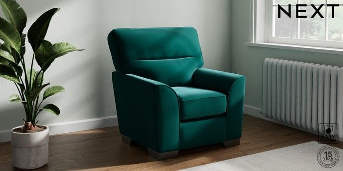 6.12.1 Buy Stamford Highback Small Armchair Plush Velvet Easy Clean Juniper Green Square Angle - Gunmetal from the Next UK online shop Click here to use our accessible website