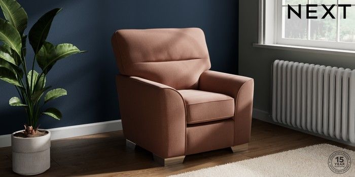 6.12.1 Buy Stamford Highback Small Armchair Relaxed Linen Look Light Rust Brown Square Angle - Chrome Metal from the Next UK online shop Click here to use our accessible website