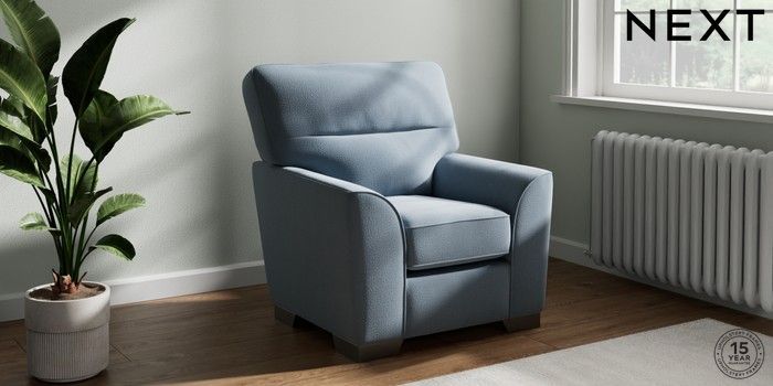 6.12.1 Buy Stamford Highback Small Armchair Relaxed Linen Look Mid Blue Square Angle - Gunmetal from the Next UK online shop Click here to use our accessible website