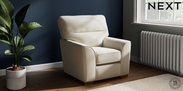 6.12.1 Buy Stamford Highback Small Armchair Relaxed Linen Look Oyster Square Angle - Mid from the Next UK online shop Click here to use our accessible website