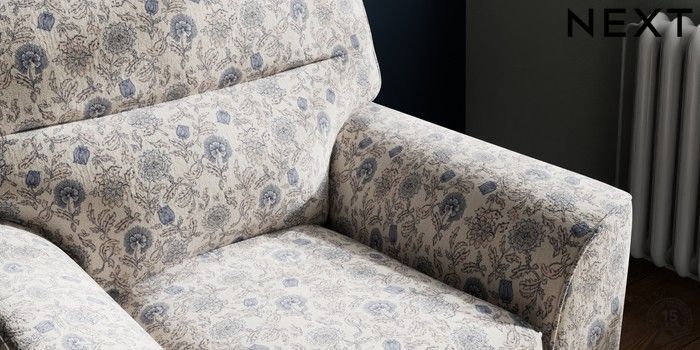 7.3.1 Buy Stamford Highback Small Armchair Relaxed Linen Look Print Woodblock Floral Blue Square Angle - Mid from the Next UK online shop Click here to use our accessible website