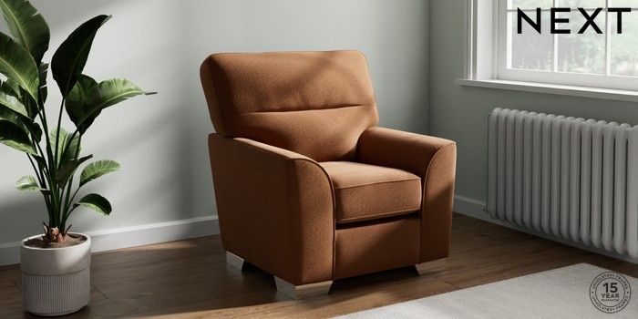 6.12.1 Buy Stamford Highback Small Armchair Ripple Chenille Mid Rust Brown Square Angle - Chrome Metal from the Next UK online shop Click here to use our accessible website