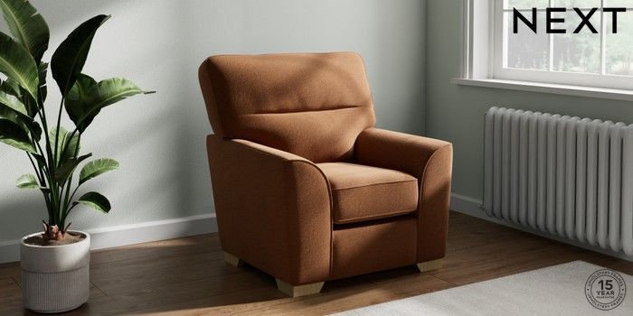 6.12.1 Buy Stamford Highback Small Armchair Ripple Chenille Mid Rust Brown Square Angle - Light from the Next UK online shop Click here to use our accessible website