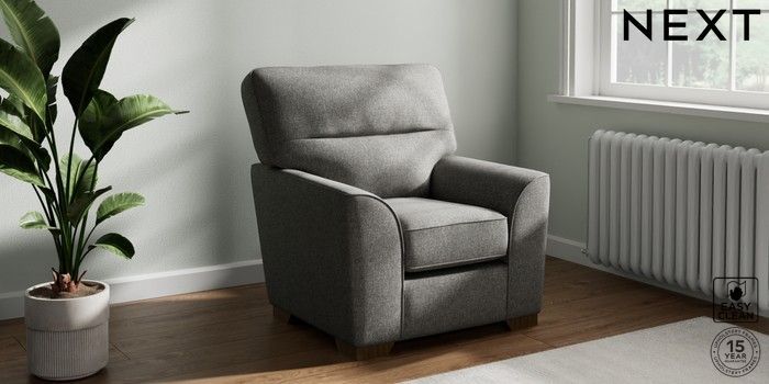 6.12.1 Buy Stamford Highback Small Armchair Tweedy Blend Easy Clean Dark Grey Square Angle - Mid from the Next UK online shop Click here to use our accessible website