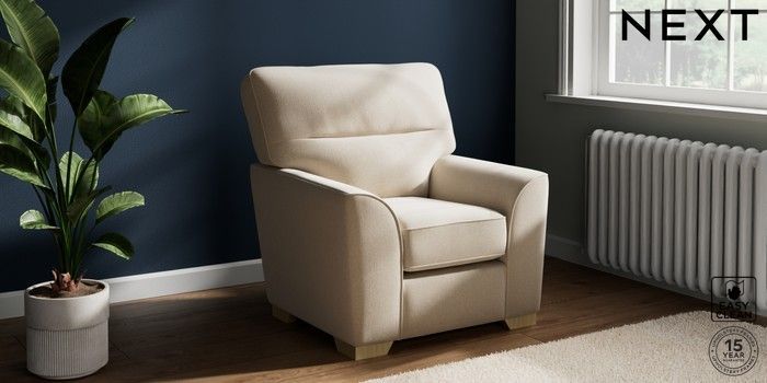 6.12.1 Buy Stamford Highback Small Armchair Tweedy Blend Easy Clean Oyster Square Angle - Light from the Next UK online shop Click here to use our accessible website