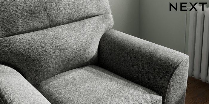 6.12.1 Buy Stamford Highback Small Armchair Tweedy Chenille Dark Grey Square Angle - Brushed Brass from the Next UK online shop Click here to use our accessible website