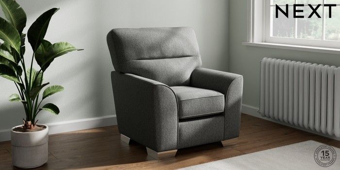 6.12.1 Buy Stamford Highback Small Armchair Tweedy Chenille Dark Grey Square Angle - Chrome Metal from the Next UK online shop Click here to use our accessible website