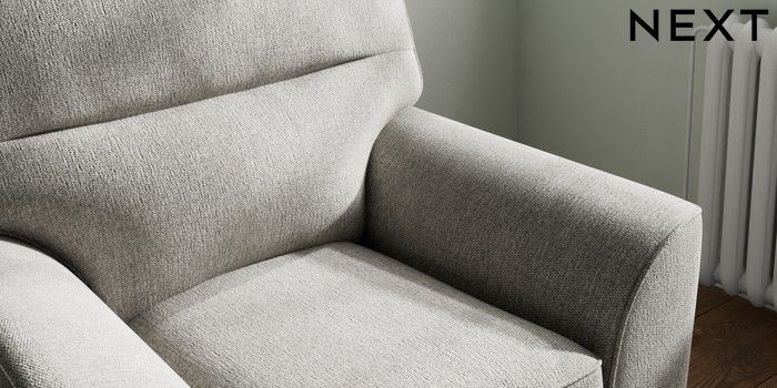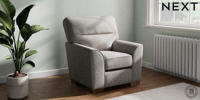 6.12.1 Buy Stamford Highback Small Armchair Tweedy Chenille Mid Grey Square Angle - Brushed Brass from the Next UK online shop Click here to use our accessible website