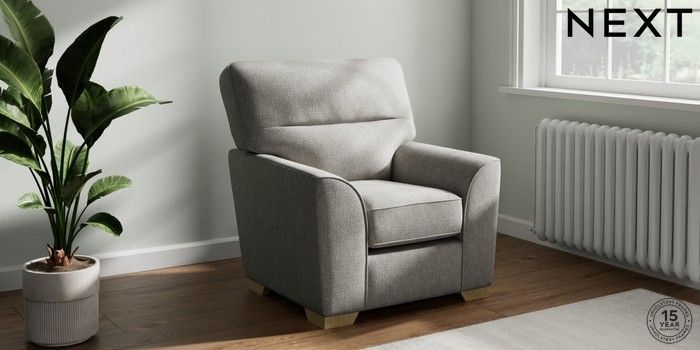 6.12.1 Buy Stamford Highback Small Armchair Tweedy Chenille Mid Grey Square Angle - Light from the Next UK online shop Click here to use our accessible website