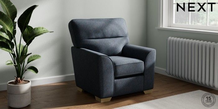 6.12.1 Buy Stamford Highback Small Armchair Tweedy Chenille Navy Blue Square Angle - Light from the Next UK online shop Click here to use our accessible website