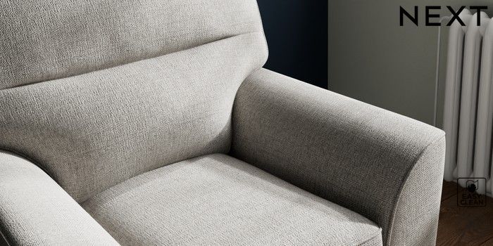 6.12.1 Buy Stamford Highback Small Armchair Woven Chenille Easy Clean Light Grey Square Angle - Brushed Brass from the Next UK online shop Click here to use our accessible website