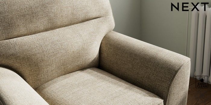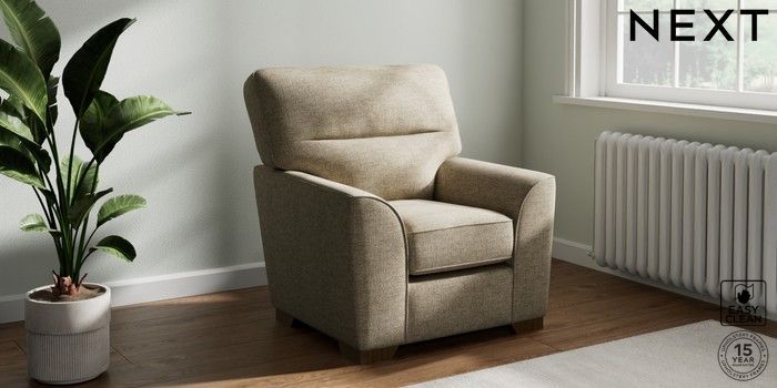 6.12.1 Buy Stamford Highback Small Armchair Woven Chenille Easy Clean Mid Natural Square Angle - Mid from the Next UK online shop Click here to use our accessible website
