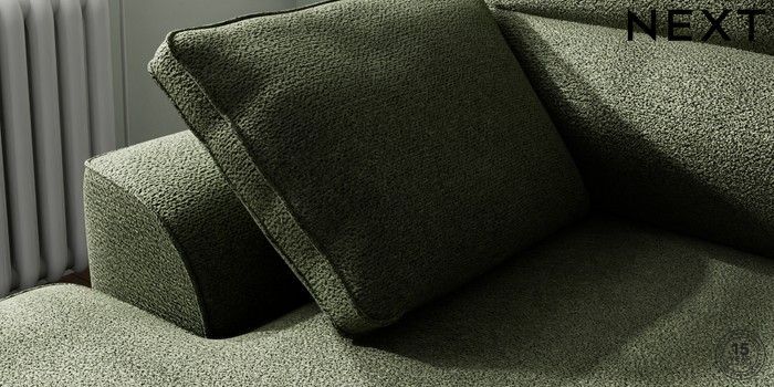 7.2.10 Buy Stamford Highback Small Sofa Chaise - Left Hand Boucle Chenille Dark Moss Green Large Square Angle - Chrome Metal from the Next UK online shop Click here to use our accessible website