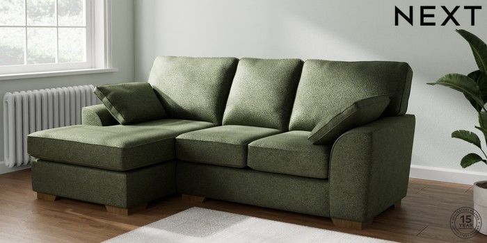 6.12.1 Buy Stamford Highback Small Sofa Chaise - Left Hand Boucle Chenille Dark Moss Green Large Square Angle - Mid from the Next UK online shop Click here to use our accessible website