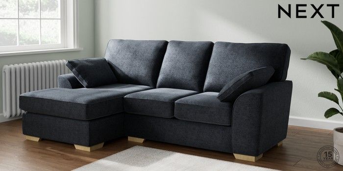 6.12.1 Buy Stamford Highback Small Sofa Chaise - Left Hand Boucle Chenille Dark Slate Blue Large Square Angle - Light from the Next UK online shop Click here to use our accessible website