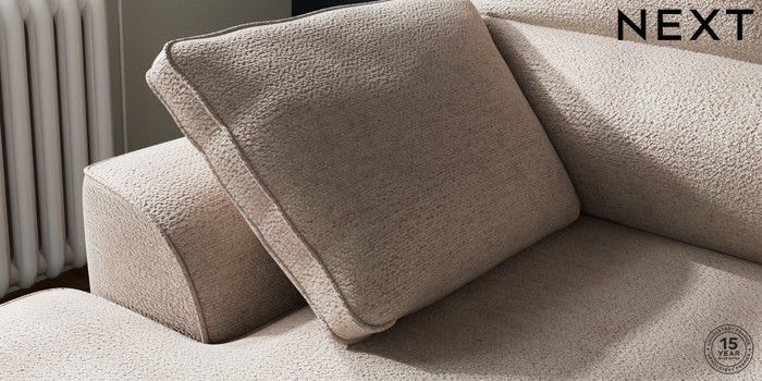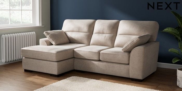 7.2.10 Buy Stamford Highback Small Sofa Chaise - Left Hand Boucle Chenille Light Natural Large Square Angle - Dark from the Next UK online shop Click here to use our accessible website