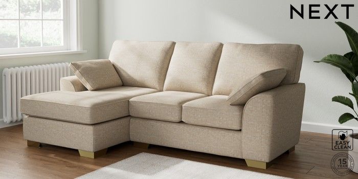 6.12.1 Buy Stamford Highback Small Sofa Chaise - Left Hand Boucle Weave Easy Clean Dark Natural Large Square Angle - Brushed Brass from the Next UK online shop Click here to use our accessible website