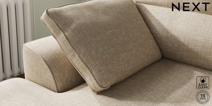 7.3.1 Buy Stamford Highback Small Sofa Chaise - Left Hand Boucle Weave Easy Clean Dark Natural Large Square Angle - Gunmetal from the Next UK online shop Click here to use our accessible website